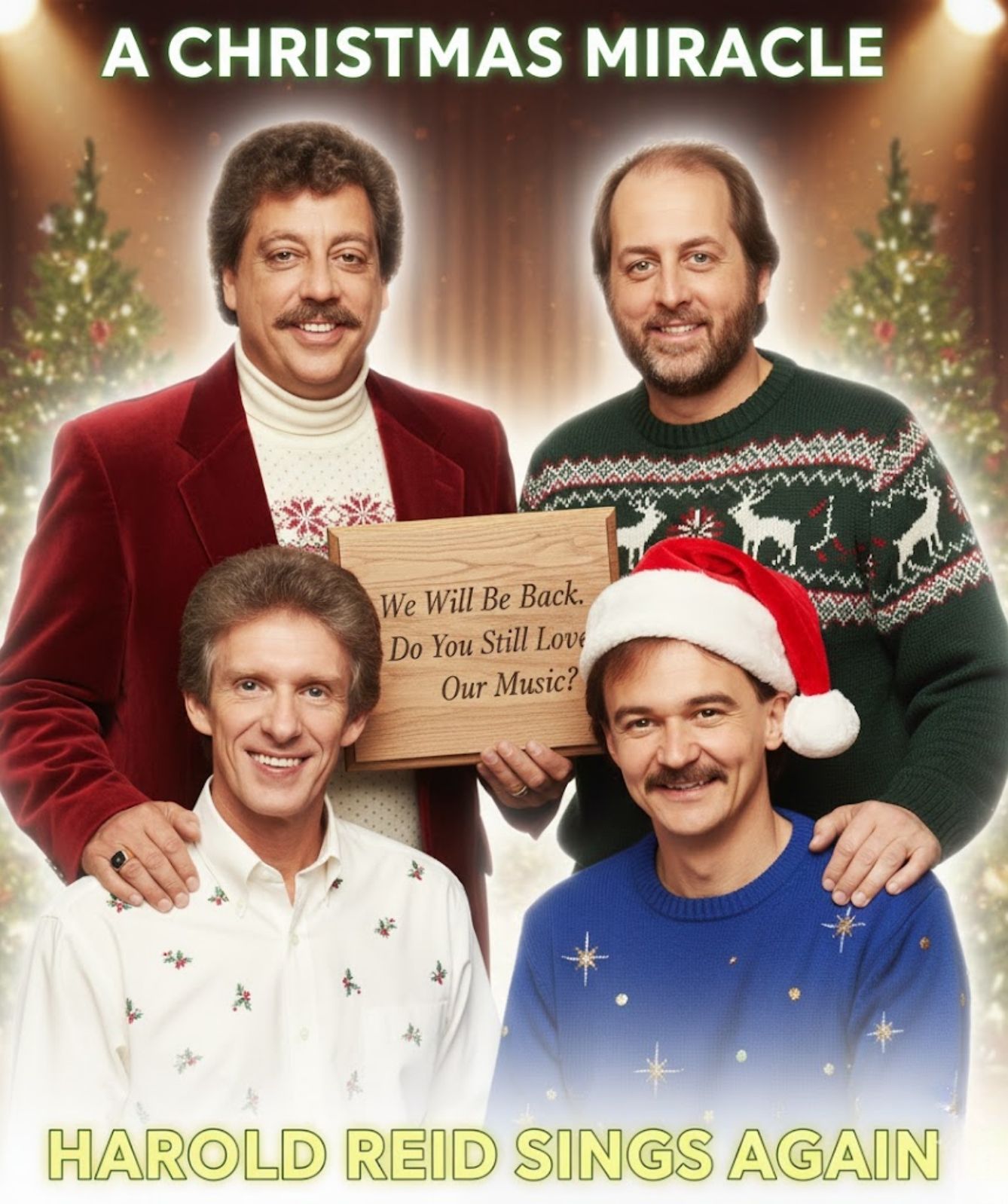 The air feels colder, gentler. Christmas lights glow softly instead of flashing. Somewhere, an old radio hums with warmth. And then it happens: Harold Reid’s unmistakable voice rises once more, not from memory, not from imagination, but from a newly restored recording that feels nothing short of miraculous.