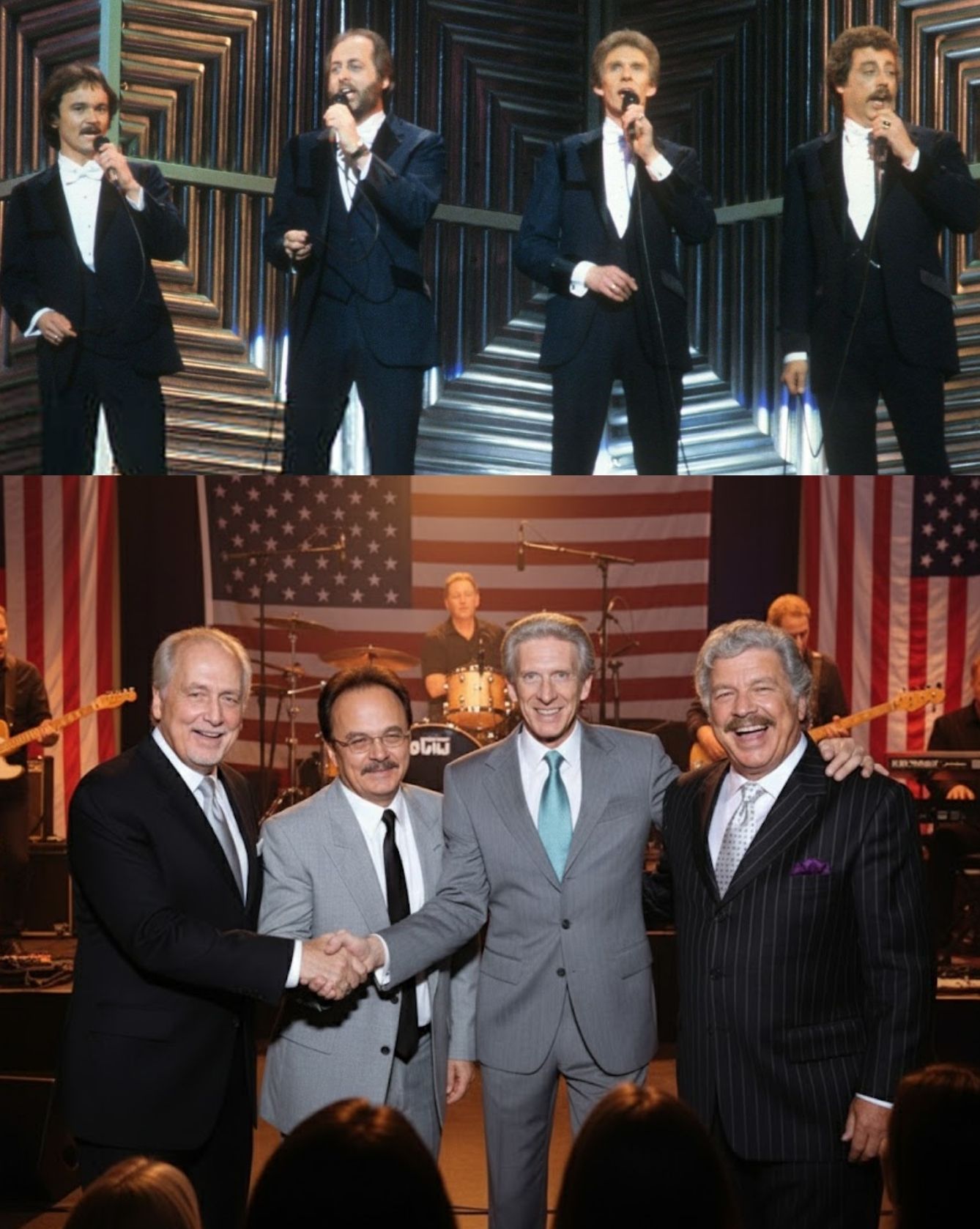 Each lyric that followed seemed to come from somewhere deeper than memory — a place where time doesn’t erase voices, only softens them. Harold’s bass, though aged, still carried that same strength that once anchored the nation’s radio waves. Jimmy’s tenor shimmered like sunlight breaking through stained glass. Phil and Don wove their harmonies around them like old friends finishing each other’s sentences.