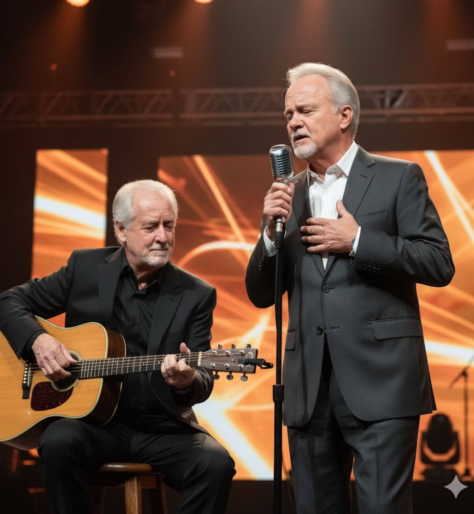 Then, with Jimmy Fortune beside him, their two voices rose — trembling, beautiful, and pure. The song was an old Statler favorite, one Harold had once sung with that booming bass that could shake the rafters. But now, the sound came gentler, more fragile — a whisper of faith and farewell.