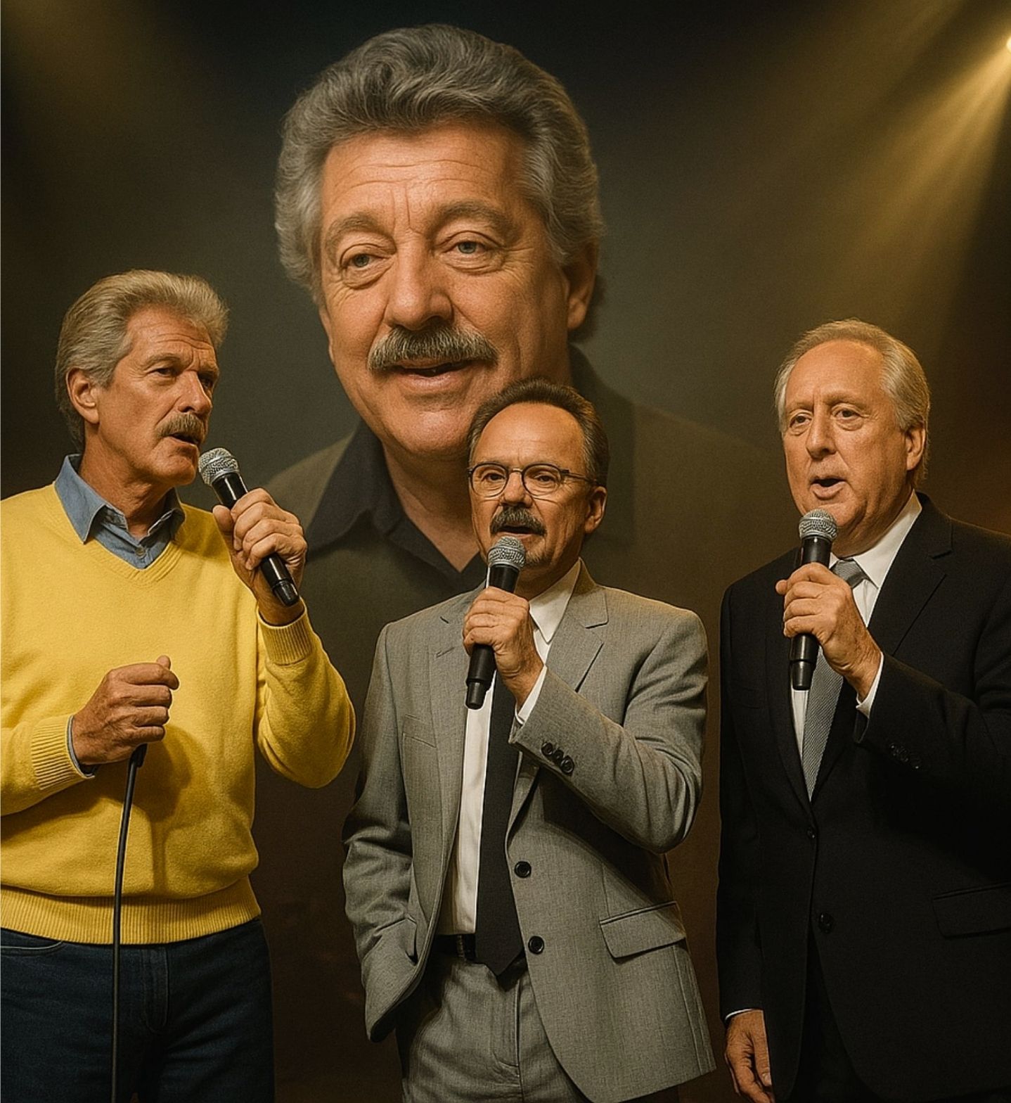 When Jimmy, Don, and Phil walked forward, the audience rose to their feet in a wave of gratitude so strong it seemed to hold the three men upright. They were not just former members of The Statler Brothers. They were family — bound by decades of roads traveled, jokes shared, storms survived, and stages conquered. And tonight, they had gathered for one purpose: to honor the towering presence whose voice once rumbled like thunder and whose humor could disarm even the hardest day.