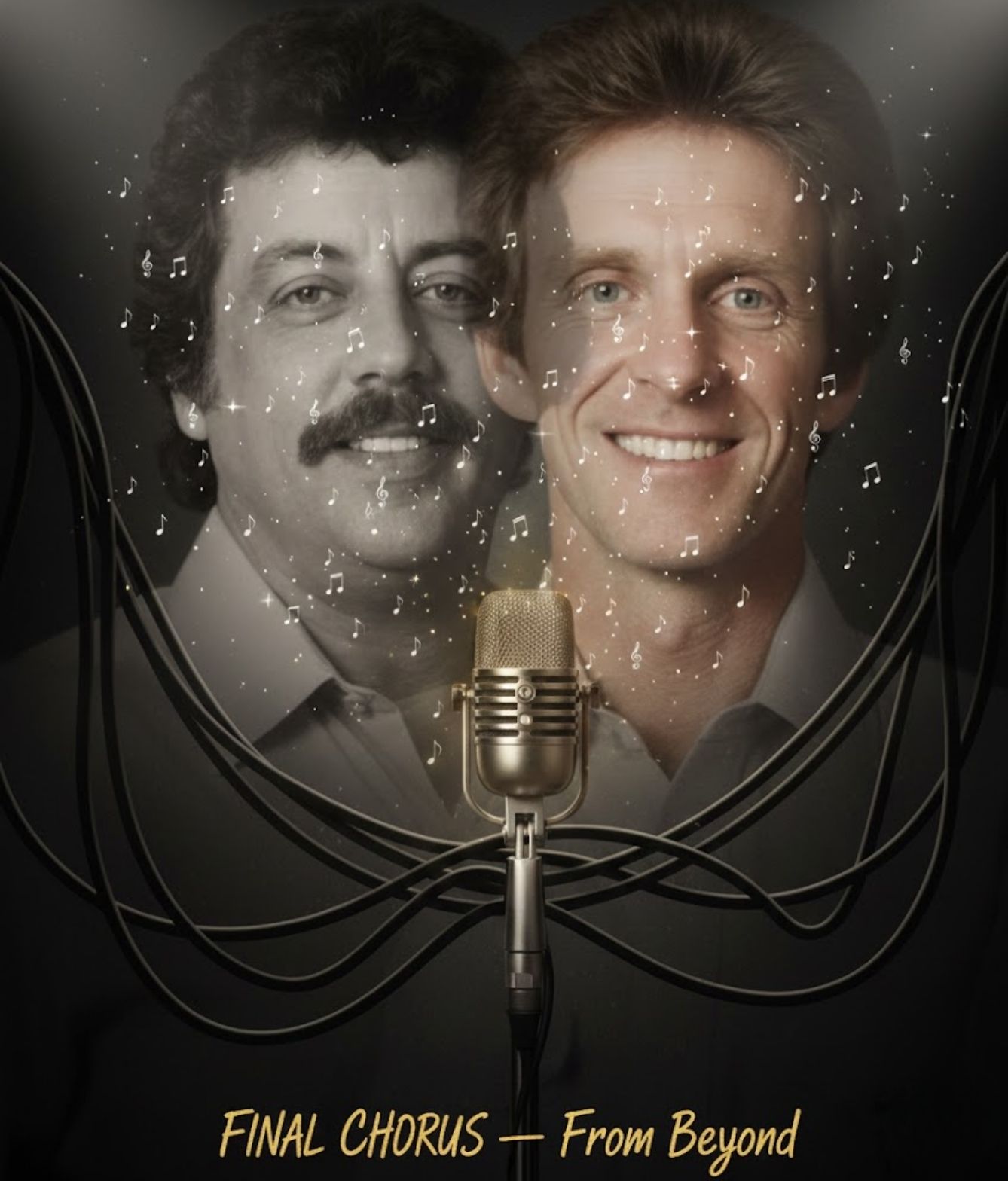 The tape begins softly, almost like a breath returning from another world. Phil’s voice appears first — fragile yet warm, a whisper rising from the edge of memory, carrying the gentle restraint he was always known for. Then, without warning, Harold’s deep resonance joins him, shaking the room with that unmistakable rumble that once anchored every Statler stage. The contrast is so perfect — the feather and the thunder, the hush and the roar — that listeners describe losing their breath before the harmony even fully forms.