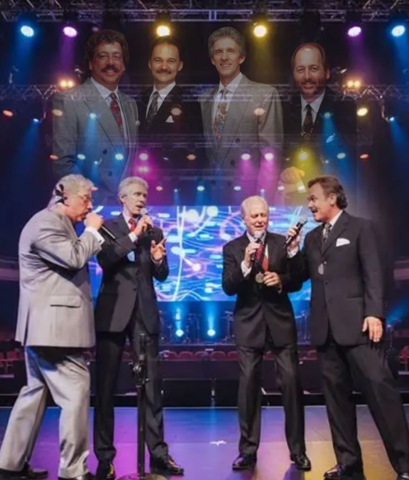 The lights inside the old hall dimmed to a gentle, amber hush, settling over the stage like a warm blanket pulled from the past. And there, standing shoulder to shoulder in a tight, familiar line, were The Statler Brothers — four voices woven together by decades of friendship, laughter, hardships, and the kind of lived-in harmony that only time can shape.