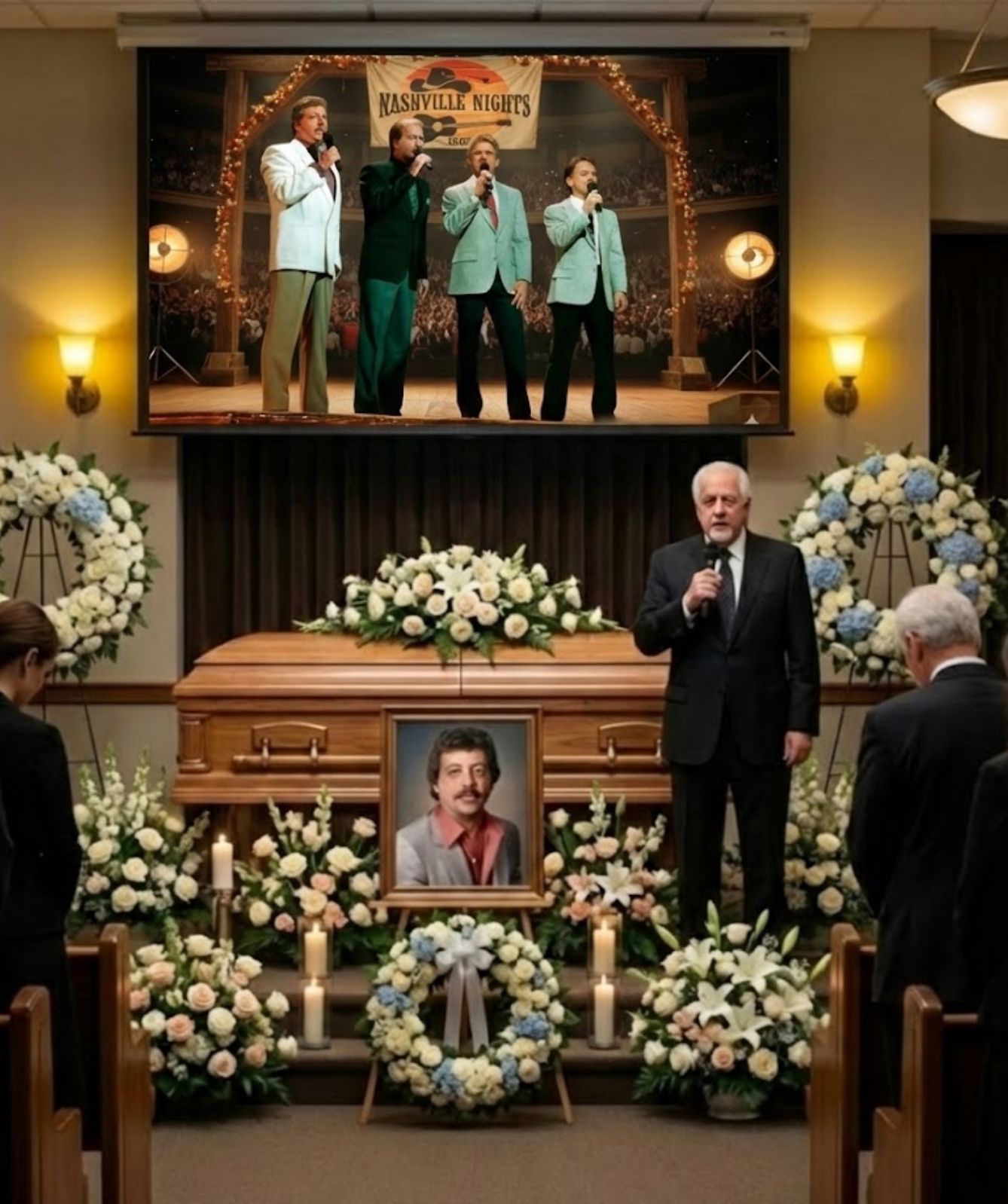 The air was still. The kind of stillness that feels almost deliberate, as if the world itself understands that it must not interrupt what is about to happen. Friends, family, and lifelong listeners of The Statler Brothers gathered not simply to say goodbye, but to hold space for something unfinished.